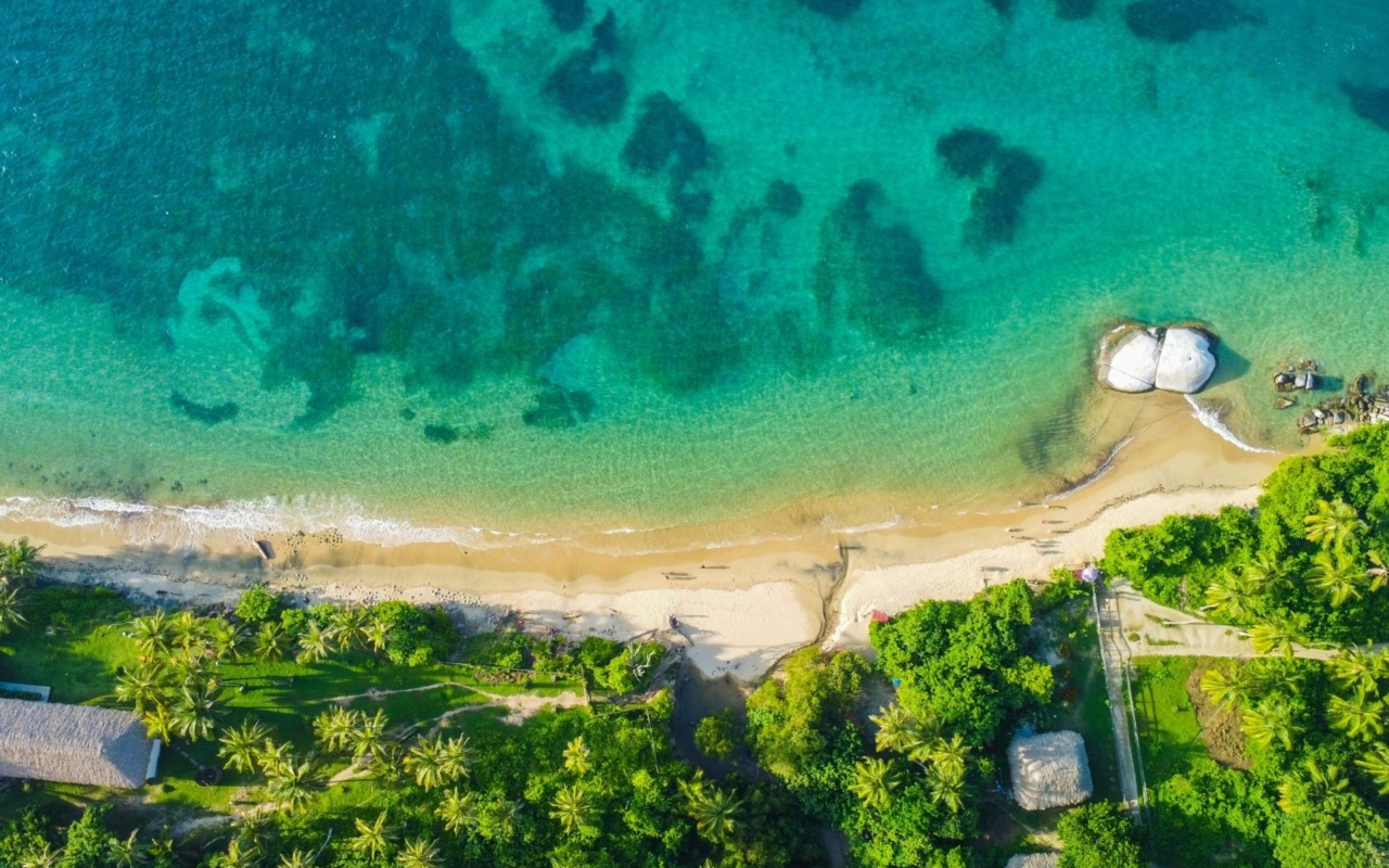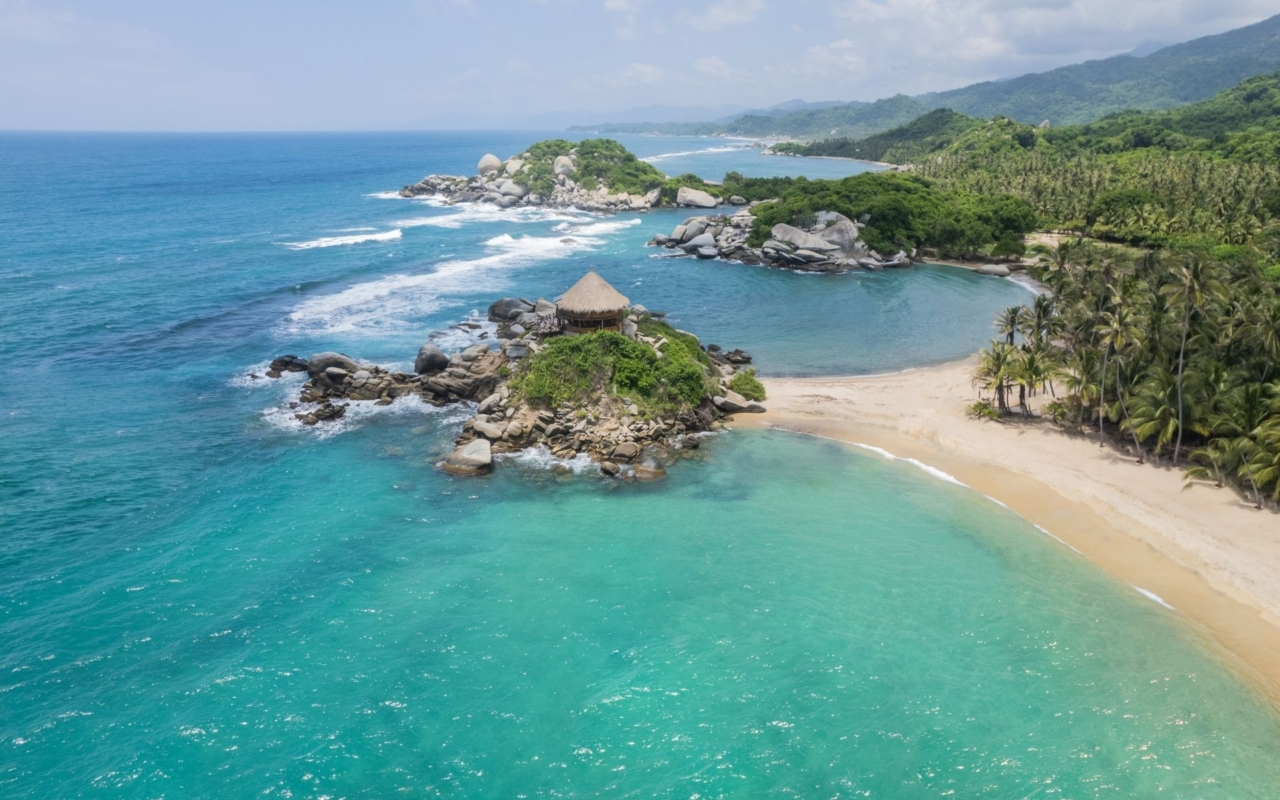 Le Parc National Naturel Tayrona, à 1h de Santa Marta, concentre tout ce dont on rêve : plages de sable blanc bordées de cocotiers, eaux turquoise, forêt tropicale dense, rochers de granit sculptés par les vagues. Le parc s’étend au pied de la Sierra Nevada, la plus haute chaîne côtière au monde (sommets à 5 775 m à seulement 42 km de la mer).