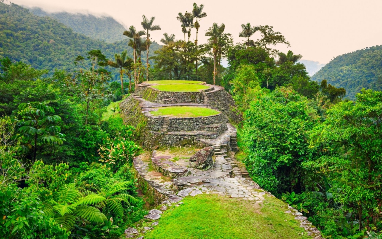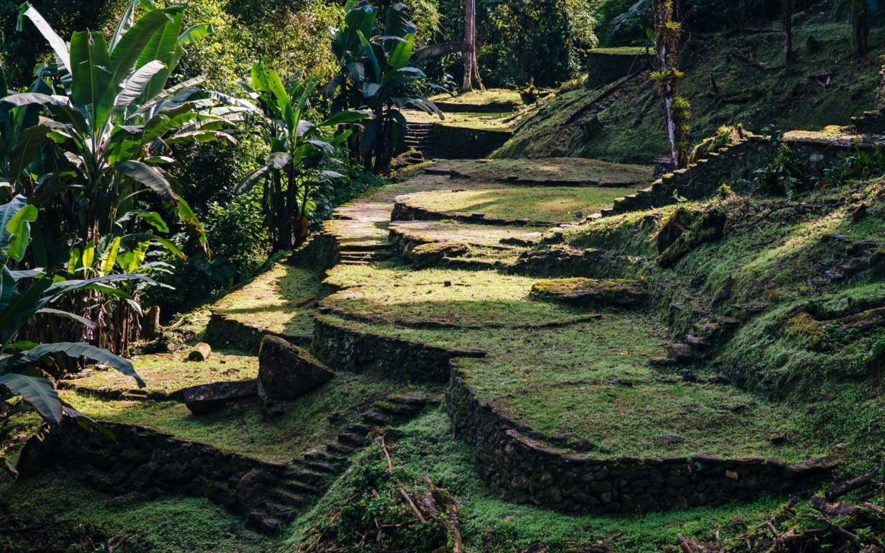 Le trek vers la Cité Perdue (4-5 jours) traverse la jungle de la Sierra Nevada vers une cité précolombienne construite vers l’an 800, plusieurs siècles avant Machu Picchu. Le site, redécouvert en 1972, s’étend sur des terrasses reliées par des escaliers de pierre au milieu d’une végétation luxuriante.